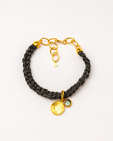 Collar KAIA con strass trenzado a mano y Madreperla negra de 12mm.
