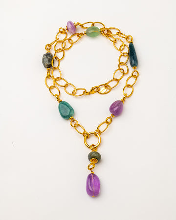 Long necklace with agate, amethyst, fluorite and labradorite.