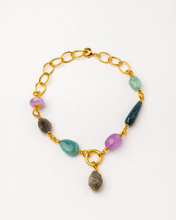Short necklace with agate, amethyst, fluorite and labradorite.