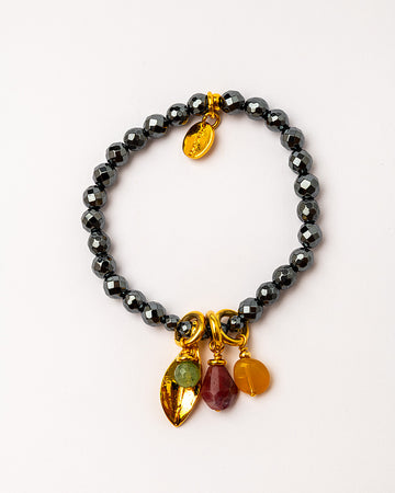 Pulsera elástica con hematite, ópalo, turmalina y aventurina.